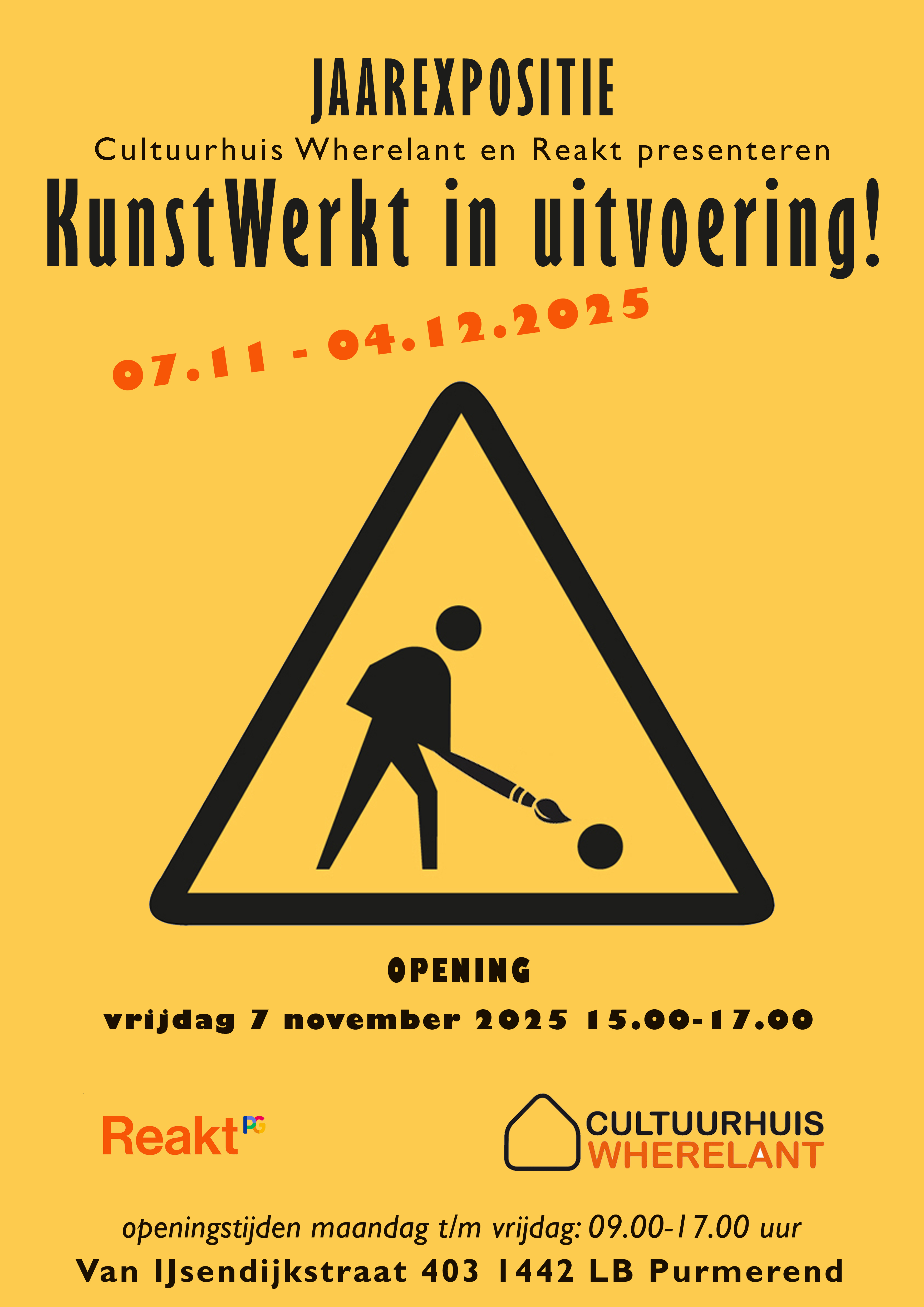 KunstWerkt! is een kunsteducatie- en coachingstraject voor mensen met een psychische kwetsbaarheid. Al 19 jaar kunnen deelnemers bij Cultuurhuis Wherelant in Purmerend cursussen volgen van professionele kunstdocenten, in samenwerking met Reakt Purmerend. Zowel beginners als gevorderden kunnen in het atelier van Wherelant workshops volgen in diverse technieken bij verschillende kunstdocenten.